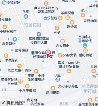 湖南省湘潭市岳塘区岳塘街道建设南路76号莲城商业步行街B区综合楼1栋0404001号